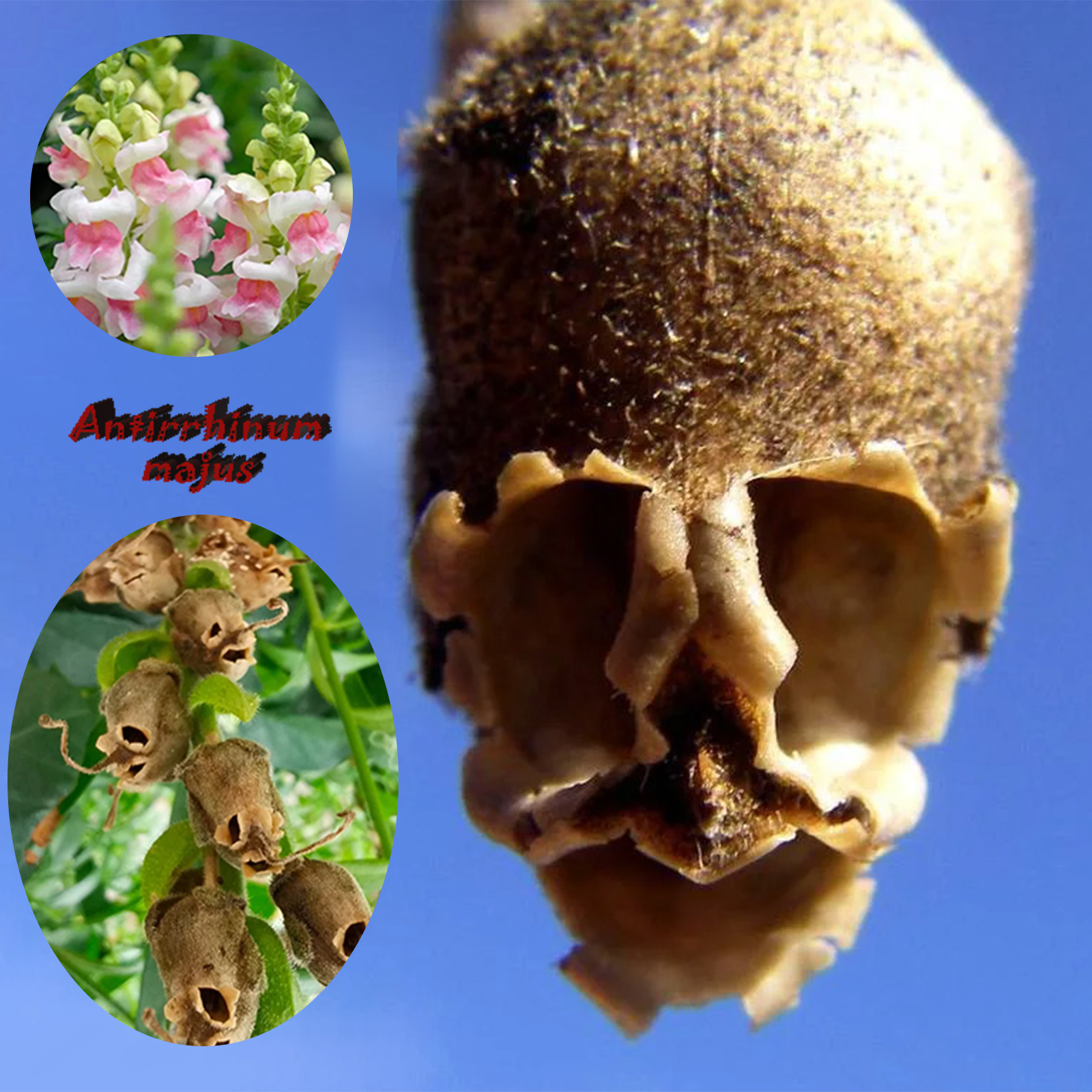 Extreme two-faced flower. Antirrhinum majus blooms beautifully in a variety of colors, but when the flower dies, it turns into a skull-like fruit. The Chinese call this flower "goldfish grass" because its petals hang gently downward, like the tail of a goldfish. But the British call it "snapdragon" (snapdragon), because its petals will open like a dragon's mouth when gently pinched from both sides.