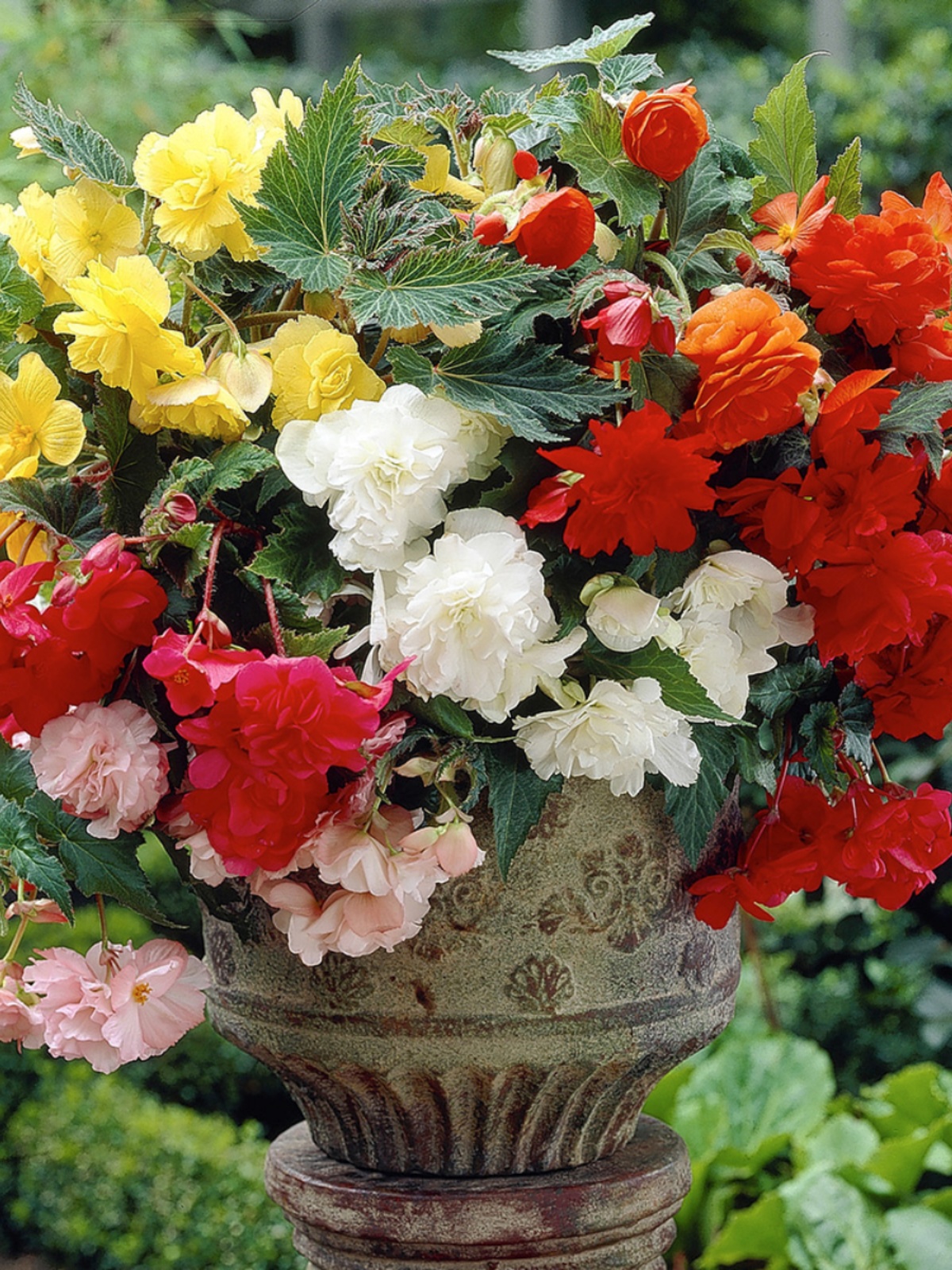 Large, showy flowers hang down like waterfalls. This plant has faintly scented double flowers in rich shades of pink, white and red. Easy to grow. When planted, flowers begin to bloom in the summer and continue until frost comes. Shaded or partially shaded decks and terraces get a beautiful boost when gardeners grow it in containers.