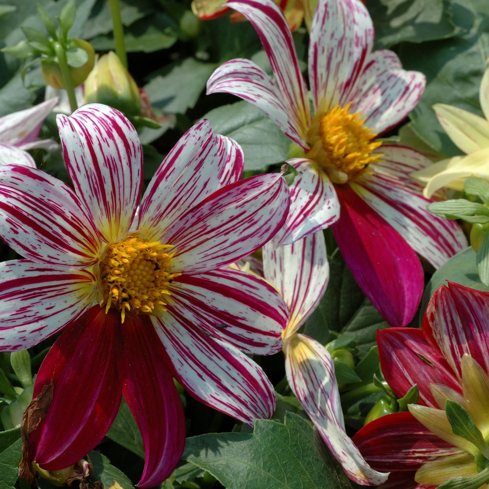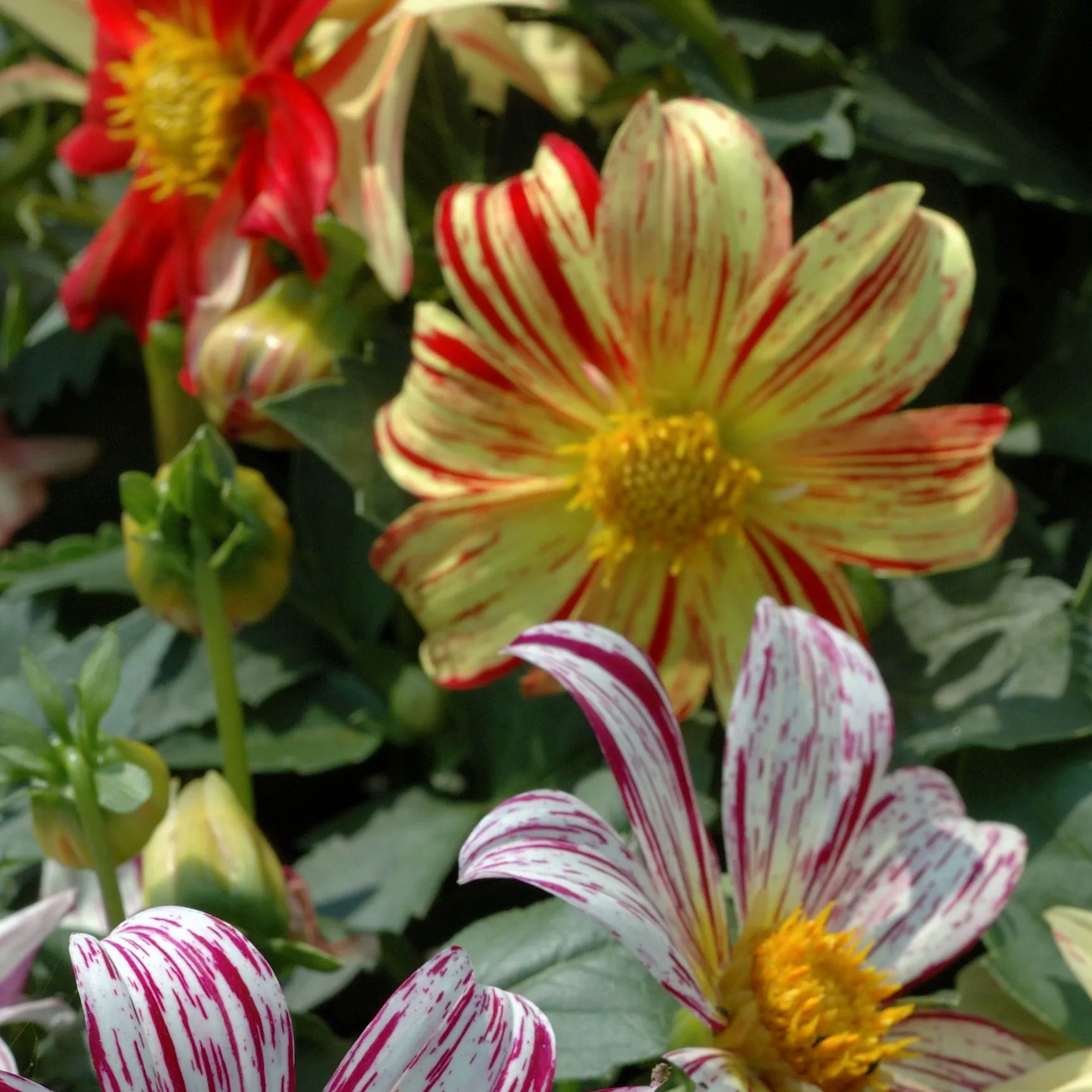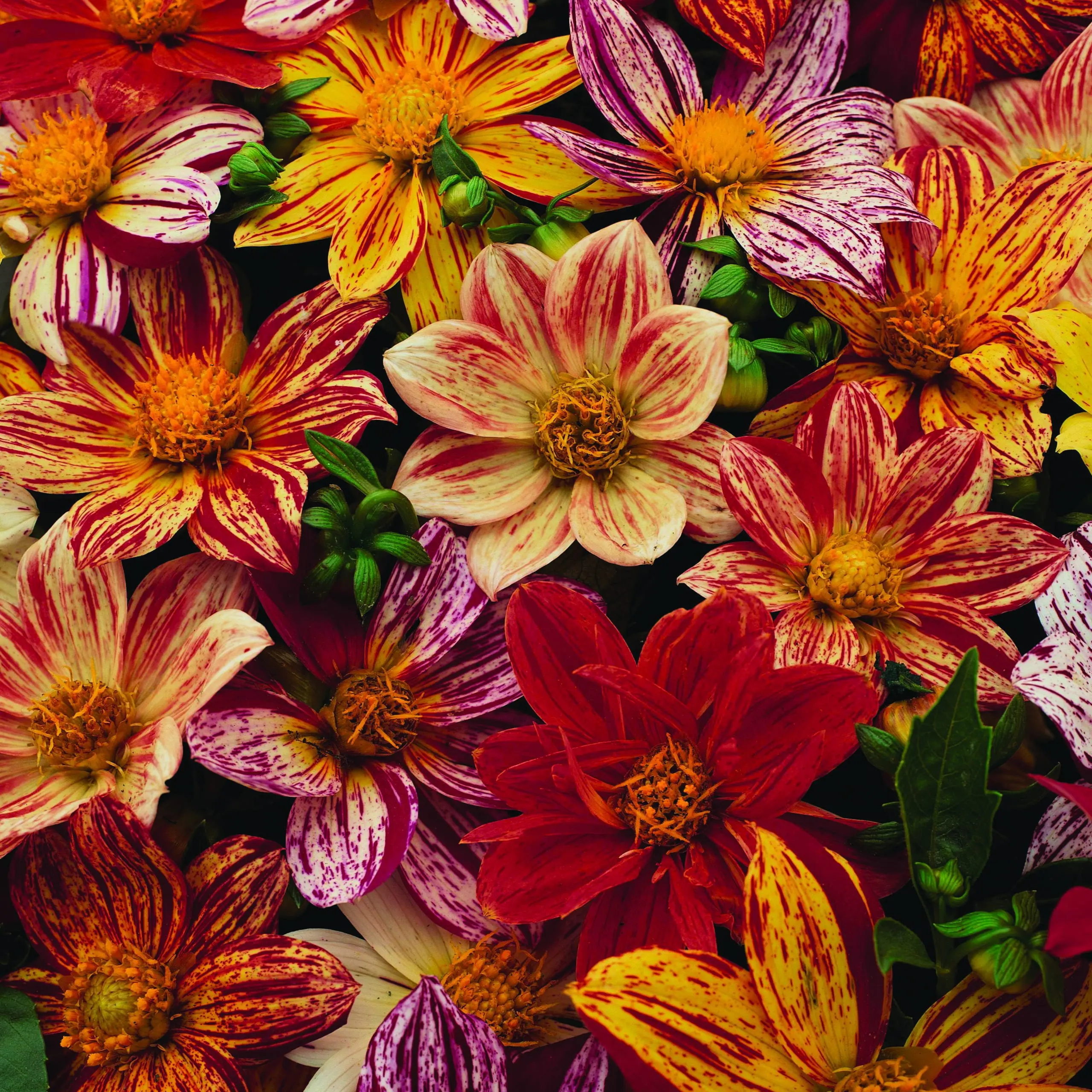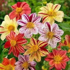 🪴FLAMBOYANT, BROAD PETALED MIX OF BRIGHT, STRIPED FLOWERS. MANY VARIATIONS OF FUCHSIA, TANGERINE, CRIMSON, IVORY AND CHERRY WITH A FEW SOLID REDS AND WHITES. BUSHY, COMPACT PLANTS ARE EASY AND FAST FOR BEDS AND PLANTERS. ALSO A NICE CUT FLOWER. THIS DAHLIA WILL PROVIDE A PROFUSION OF FLOWERS FOR BEDS, BORDERS, POTS,TUBS OR ANY OTHER TYPE OF CONTAINER. PLANT DAHLIAS FROM SEED AND GROW SOME OF THE MOST BEAUTIFUL FLOWERS ON EARTH! GROWS TO A HEIGHT OF 18-24 INCHES. LIKES FULL SUN/PARTIAL SHADE. LOOKS TERRIFIC PAIRED WITH BLACK DAHLIAS AND/OR RED DAHLIAS. CAREFREE PLANTS THAT ARE NOT FUSSY ABOUT SOIL. BASICALLY LOOKS AFTER ITSELF, BUT SOIL SHOULD BE KEPT MOIST. GOOD CUT OR DRIED FLOWER. CAN BE SOWED INDOORS IN THE WINTER TO TRANSPLANTED OUTDOORS IN SPRING....OR CAN BE SOWN DIRECTLY INTO THE GARDEN IN SPRING OR SUMMER.