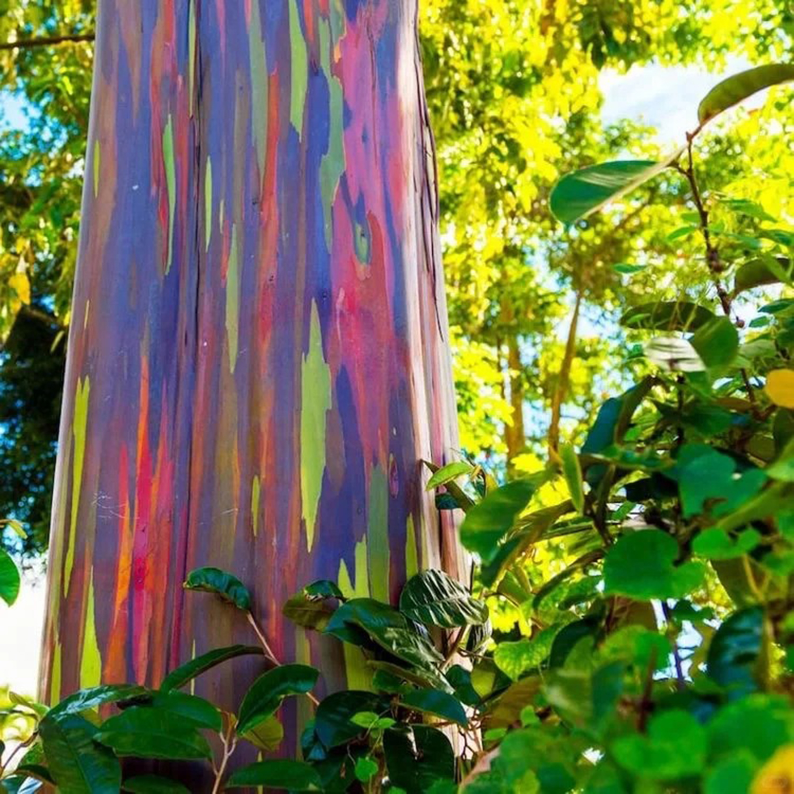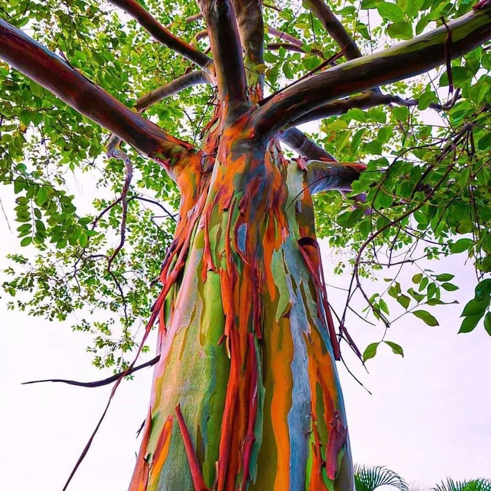 A true art work of nature, a show of colors, a giant of nature and a single splendor.😍The bark is yellowish-green at first, but as the trunk thickens with age, the bark falls off like a French sycamore, and this continuous peeling can prevent other plants from growing on the trunk. After peeling the tree trunk will appear in a variety of colors - dark green, lavender, rusty red and burnt orange, these rich colors make it look like a rainbow. The color of the bark is different at different times. The bark can also be used to make paper.The small white flowers of the rainbow eucalyptus are full of nectar and are a good source of nectar.