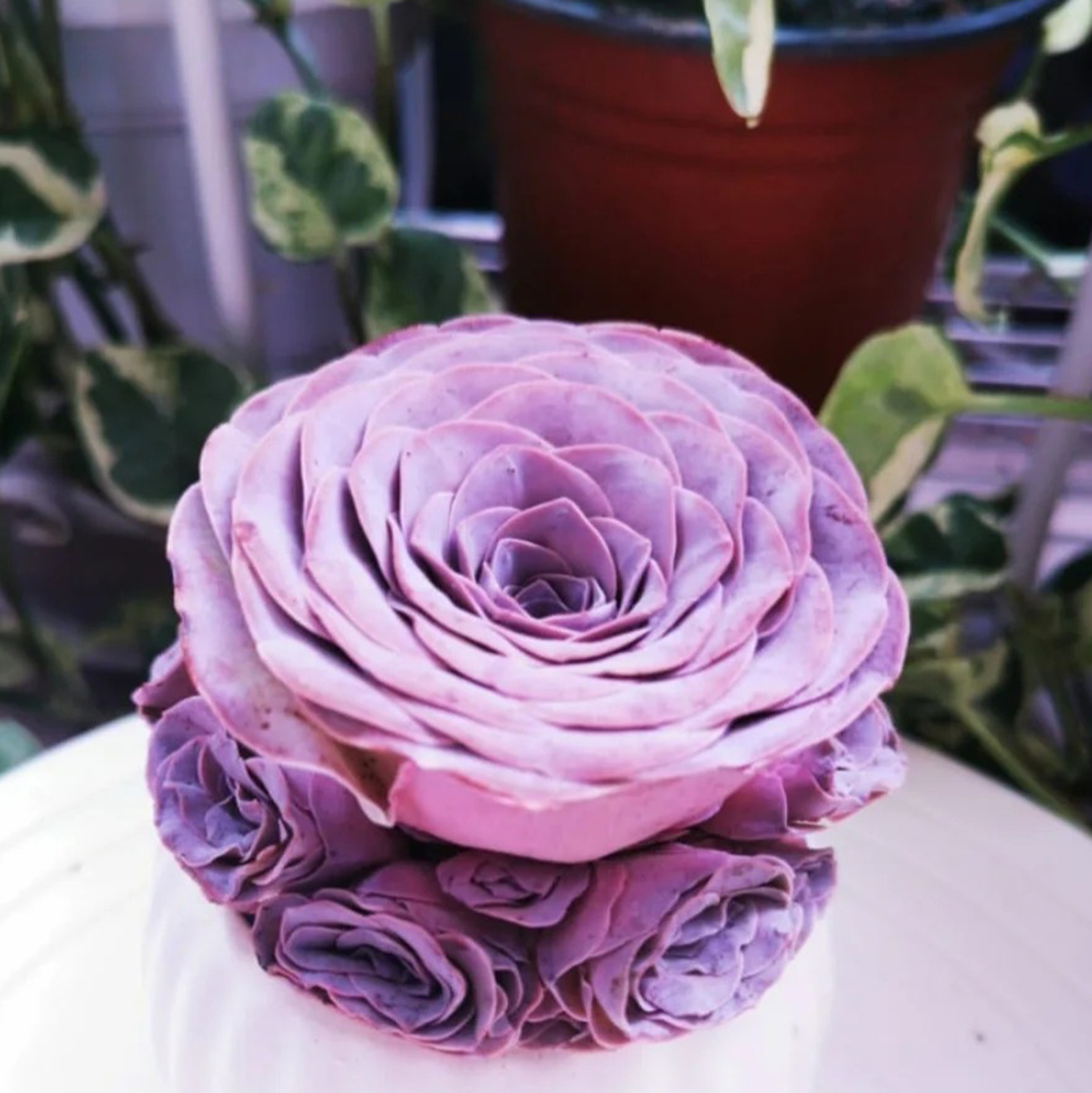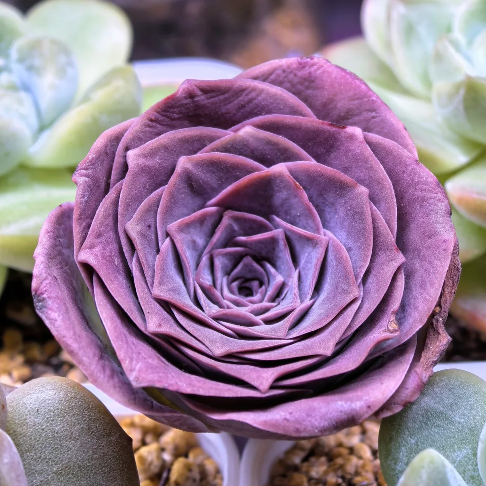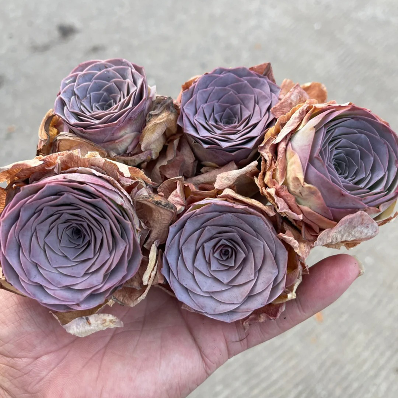 If you've been after this species of Greenovia purple rose, these plants have a very pleasing shape and size.The plants are in dormancy, the color will become more purple as the weather gets hotter.When the weather cools down under 80F highest, the new roots will come out, a cup of water will wake them up, and the size will double.They will return to dormancy if the weather warms up above 85F in Summer.