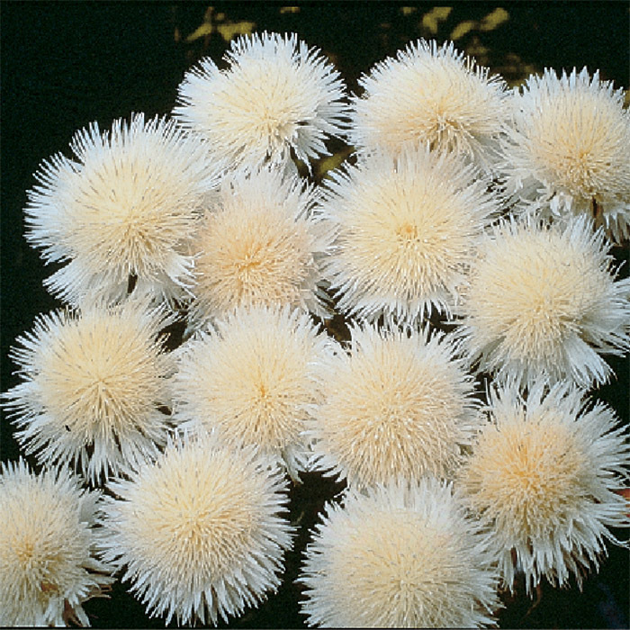 The rounded, patterned flower buds on this treasure remind us of turtle shells and are held on thistle-like serrated foliage. As buds open, they reveal feathery flowers, and each petal on these large, ivory blooms is a tube with finely fringed edges. Blooms have a goose down appearance, and morning dew on the petals sparkles like glitter.