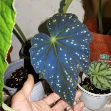 Starry Sky (Begonia sp) is shrub with thin stem and oval-lanceolate leaves with silvery white spots
