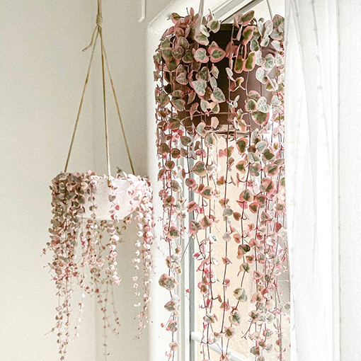 Keep your string of hearts in bright light, with some direct sun (but not all day) for the best colour and plenty of leaves.
