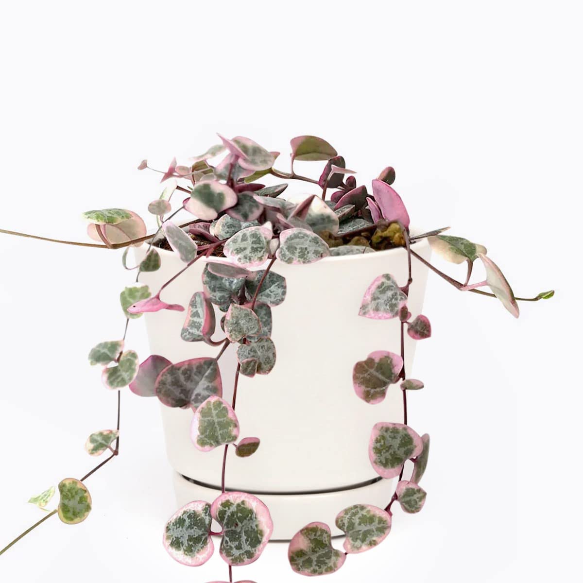 Variegated Ceropegia Woodii also known as "String of Hearts", "Rosary Vine" and "Sweetheart Vine" growing from a 2" or 4" container