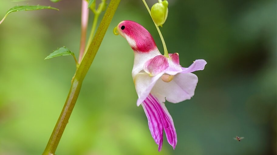 This particular species comes from the forests of Southeast Asia, including those in north Thailand, Myanmar and northeastern India, and produces flowers that look like parrots caught mid-flight. With their reddish-purple petals representing the body, a light green hook, and a lower sepal serving as a beak, each blossom is a joy to look at.